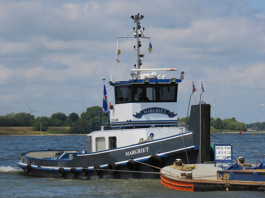 De Margriet is een karakteristieke duw- en sleepboot met een rijke geschiedenis. Het schip werd in 1930 gebouwd bij Gebr. Mulder te Stadskanaal en begon haar loopbaan als stoomsleepboot Bona Spes II. In de loop der jaren werd de boot meerdere keren gemoderniseerd en hernoemd — onder meer tot Jodi en Thom — voordat zij uiteindelijk haar huidige naam Margriet kreeg.