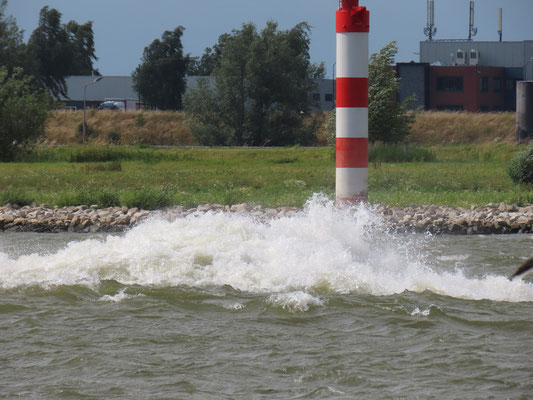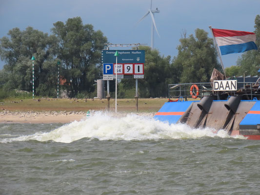 Duwboot Daan in de opvaart op de Waal beneden Millingen.