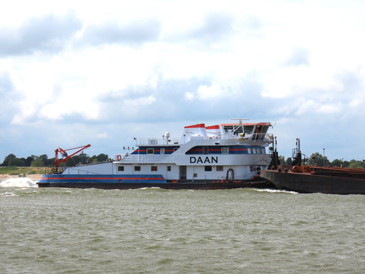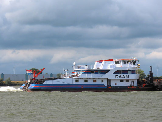 Duwboot Daan is 35 meter lang, 13 meter breed en heeft een tonnage van 153 ton.