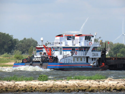 Duwboot Daan in de opvaart op de Waal boven Brug Ewijk.