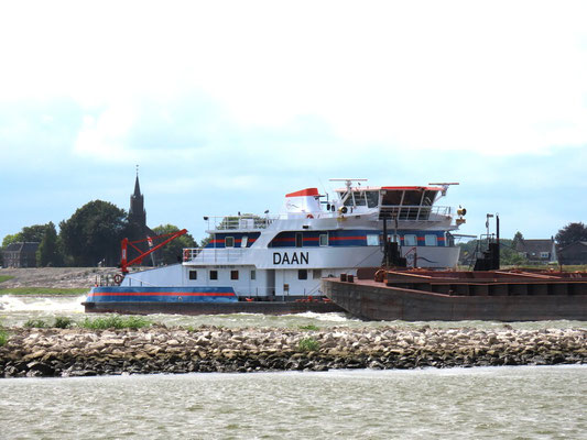 Duwboot Daan in de opvaart op de Waal beneden Zaltbommel.