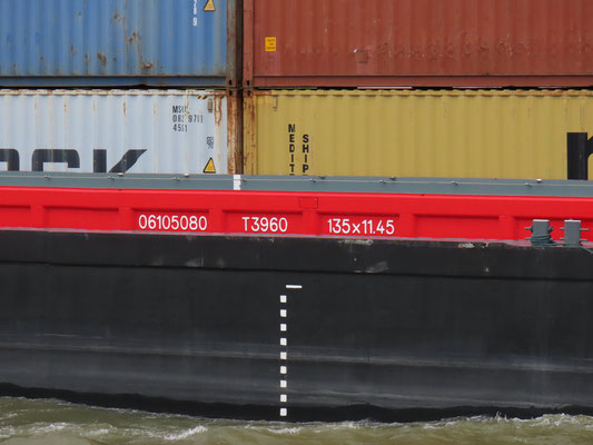 Lengte 135 x breedte 11,45 m. Laadvermogen 3960 ton