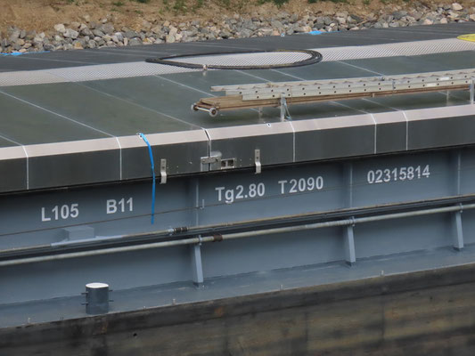 Lengte 105 x breedte 11 x diepgang 2,80 m Laadvermogen 2090 ton.