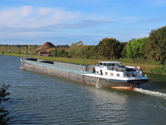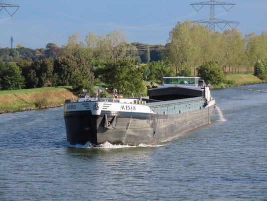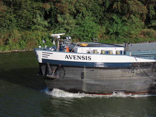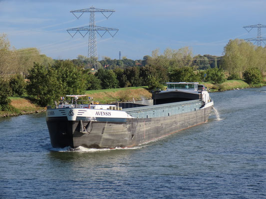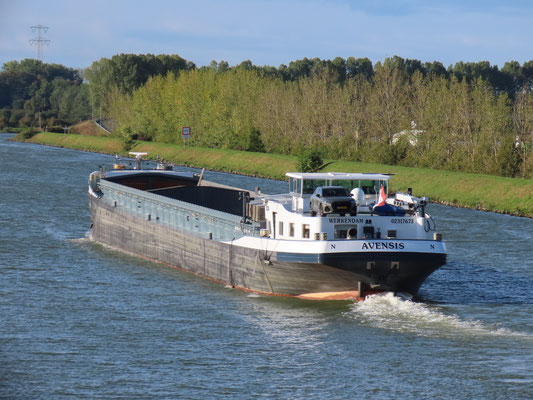 Het binnenvaartschip Avensis gefotografeerd vanaf de brug van Illikhoven aan het Julianakanaal.