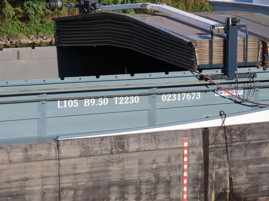Lengte 105 x breedte 9,5 m. Laadvermogen 2230 ton.