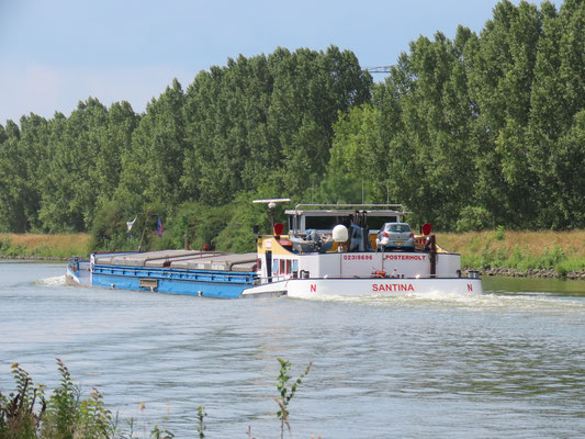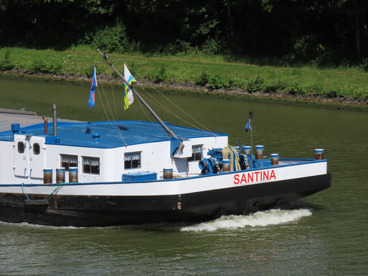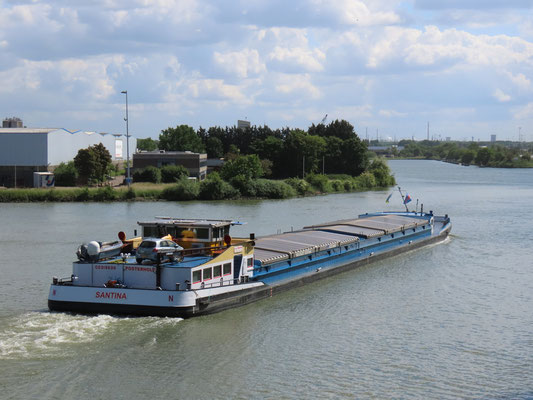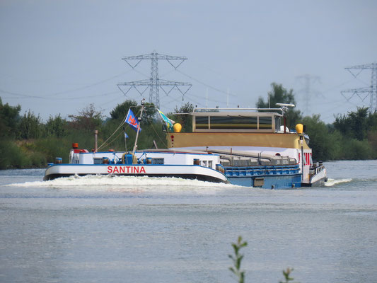 Motorvrachtschip Santina in de opvaart op het Julianakanaal .