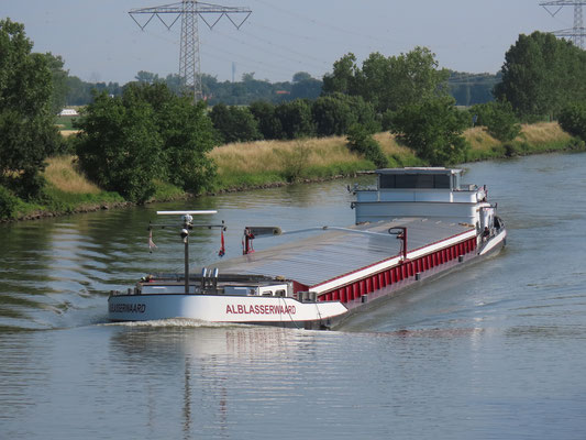 Motorvrachtschip Alblasserwaard in de opvaart op het Julianakanaal.
